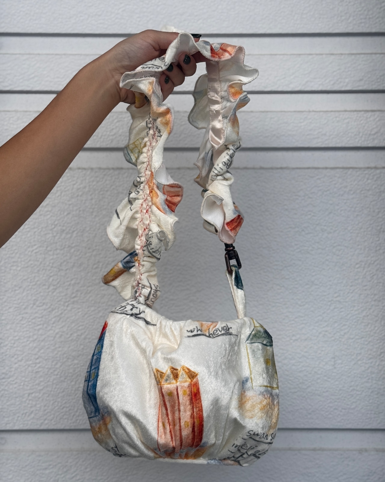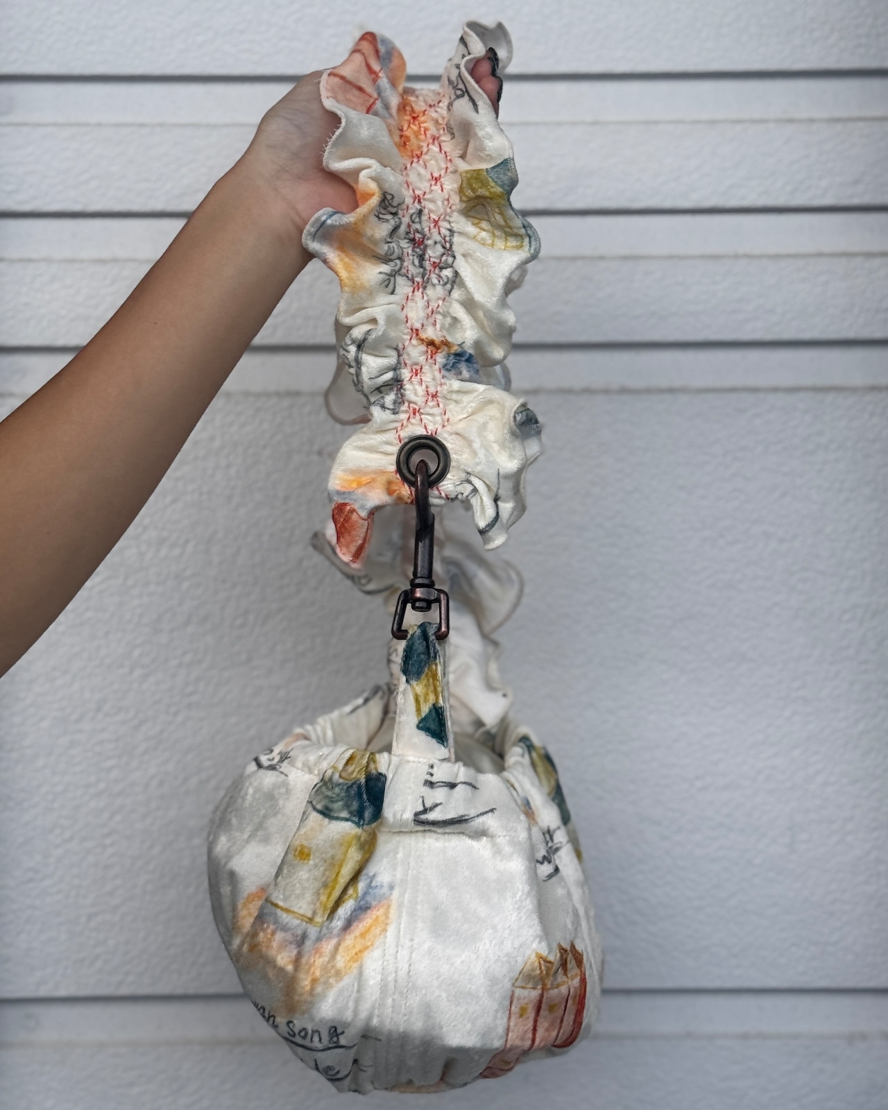 肩にかけた時にお袖のようになり一気に華やかになる鞄。