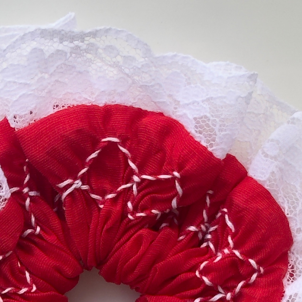 鮮やかな赤色のシュシュはコーディネートの主役になるアイテムです。